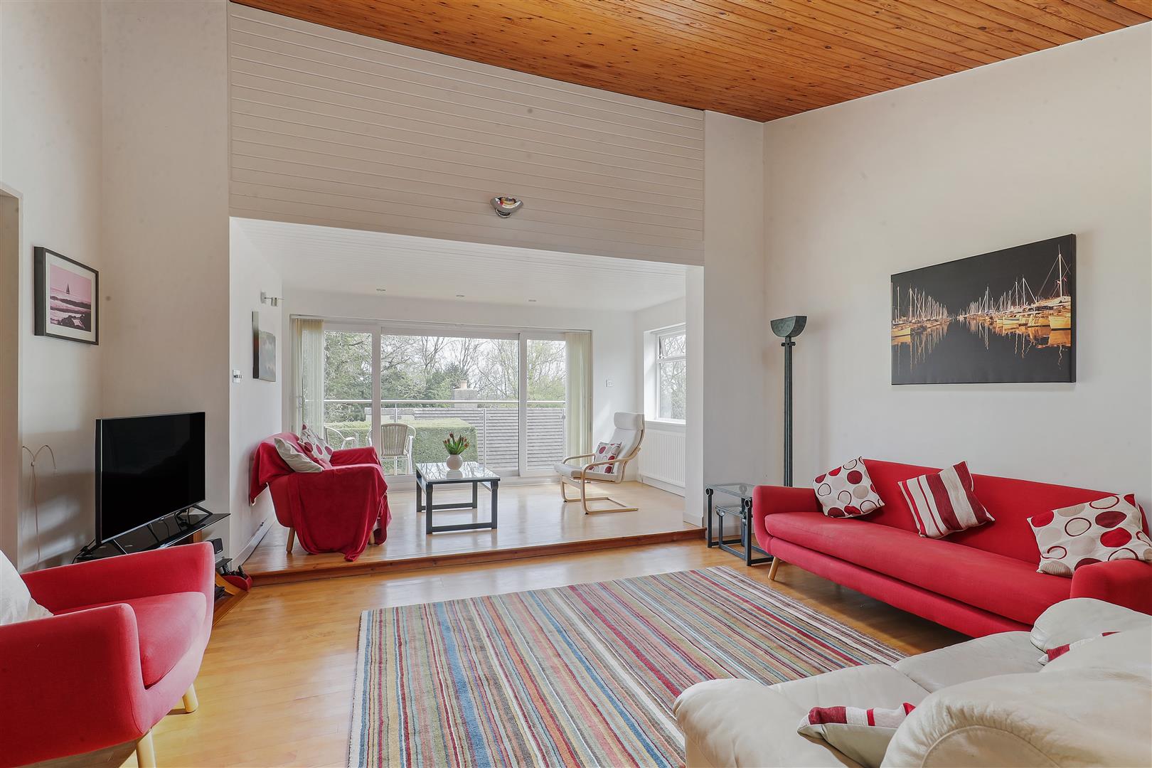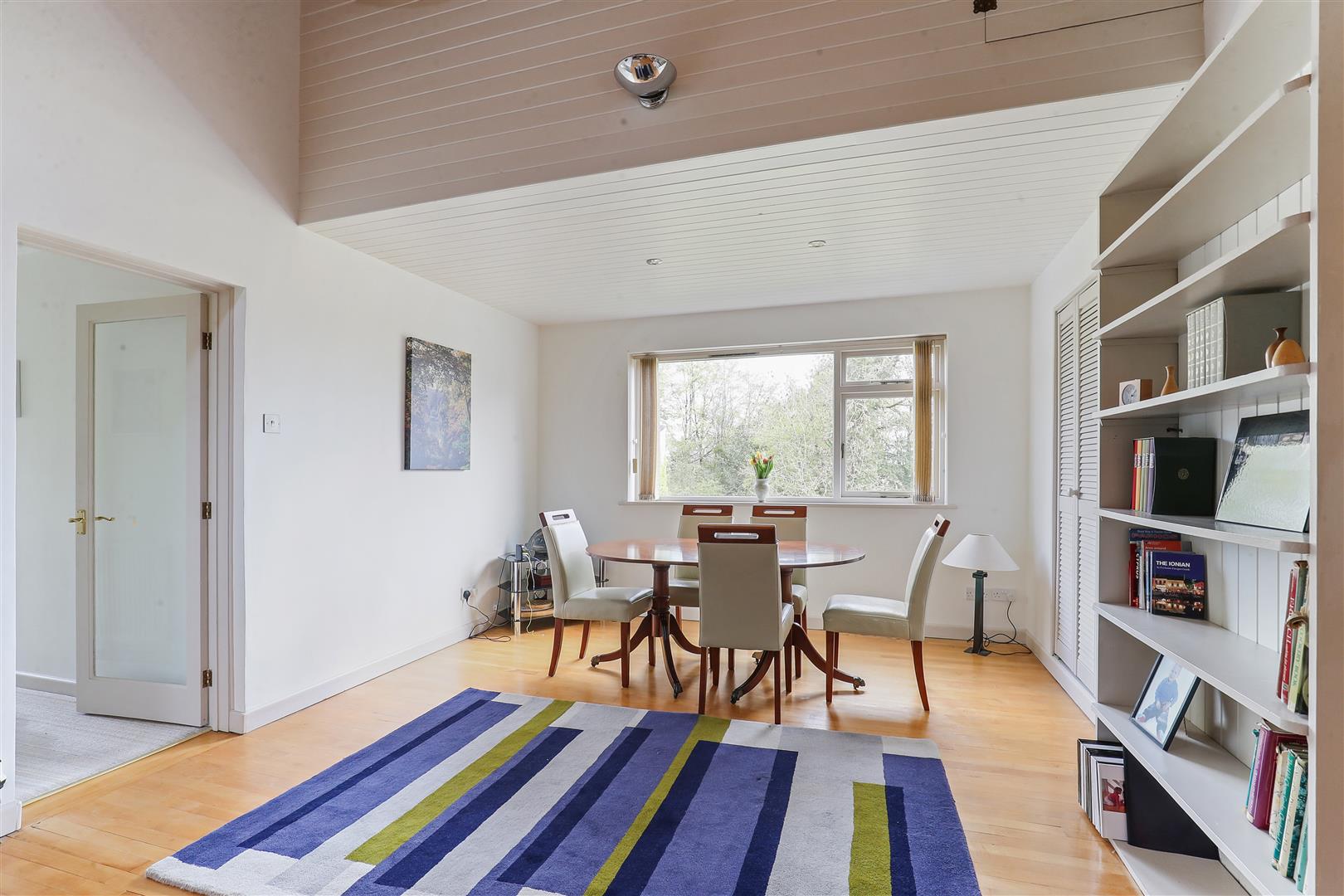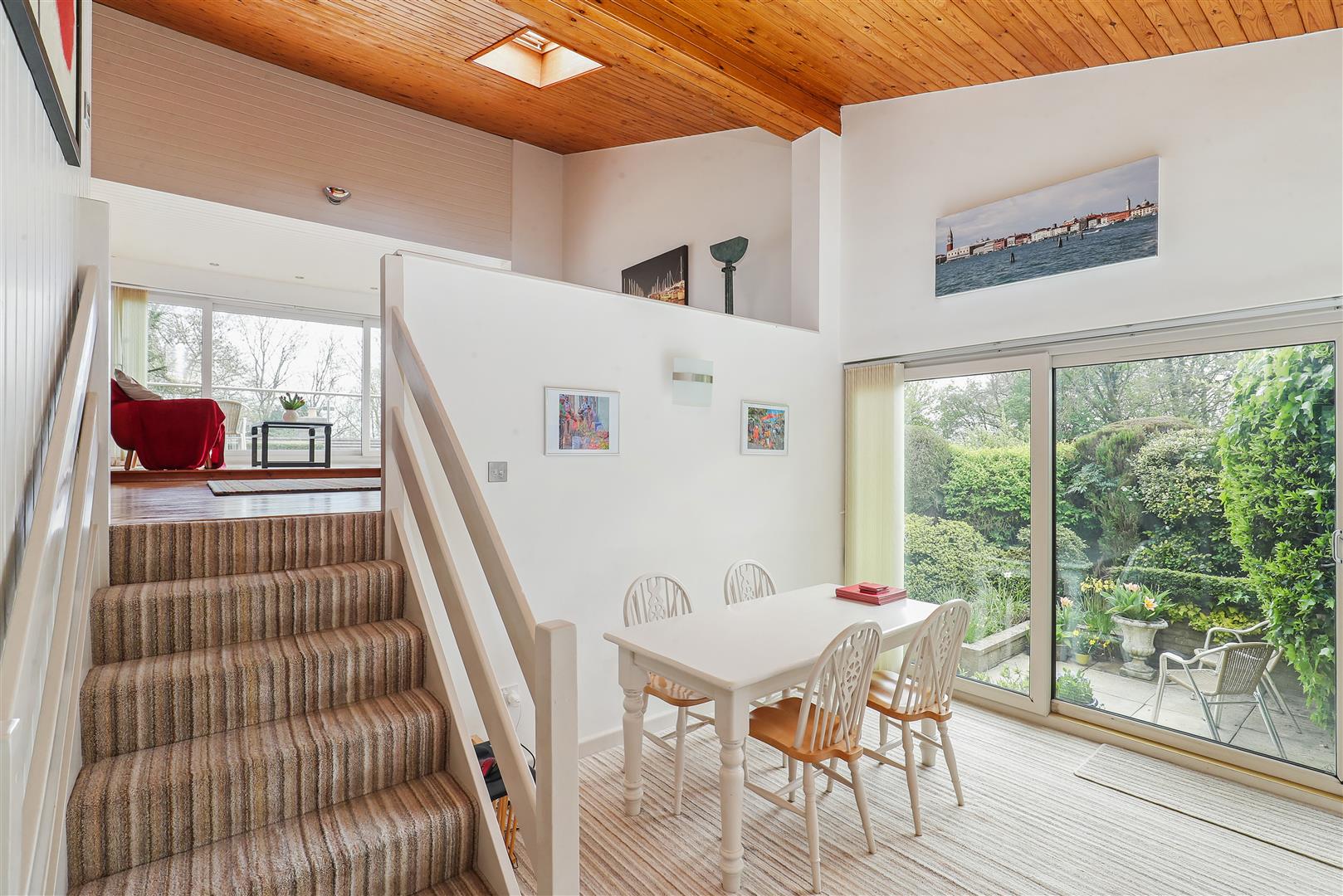 Arranged over split levels, the accommodation is both flexible and well-balanced. The first floor hosts a superb sitting room with large glazed doors opening onto a private balcony, an ideal spot to enjoy the surrounding outlook. A further reception room provides the perfect space for a home office or playroom. This level also includes two well-proportioned double bedrooms, a family bathroom, and access to an additional spacious roof terrace, ideal for summer evenings.