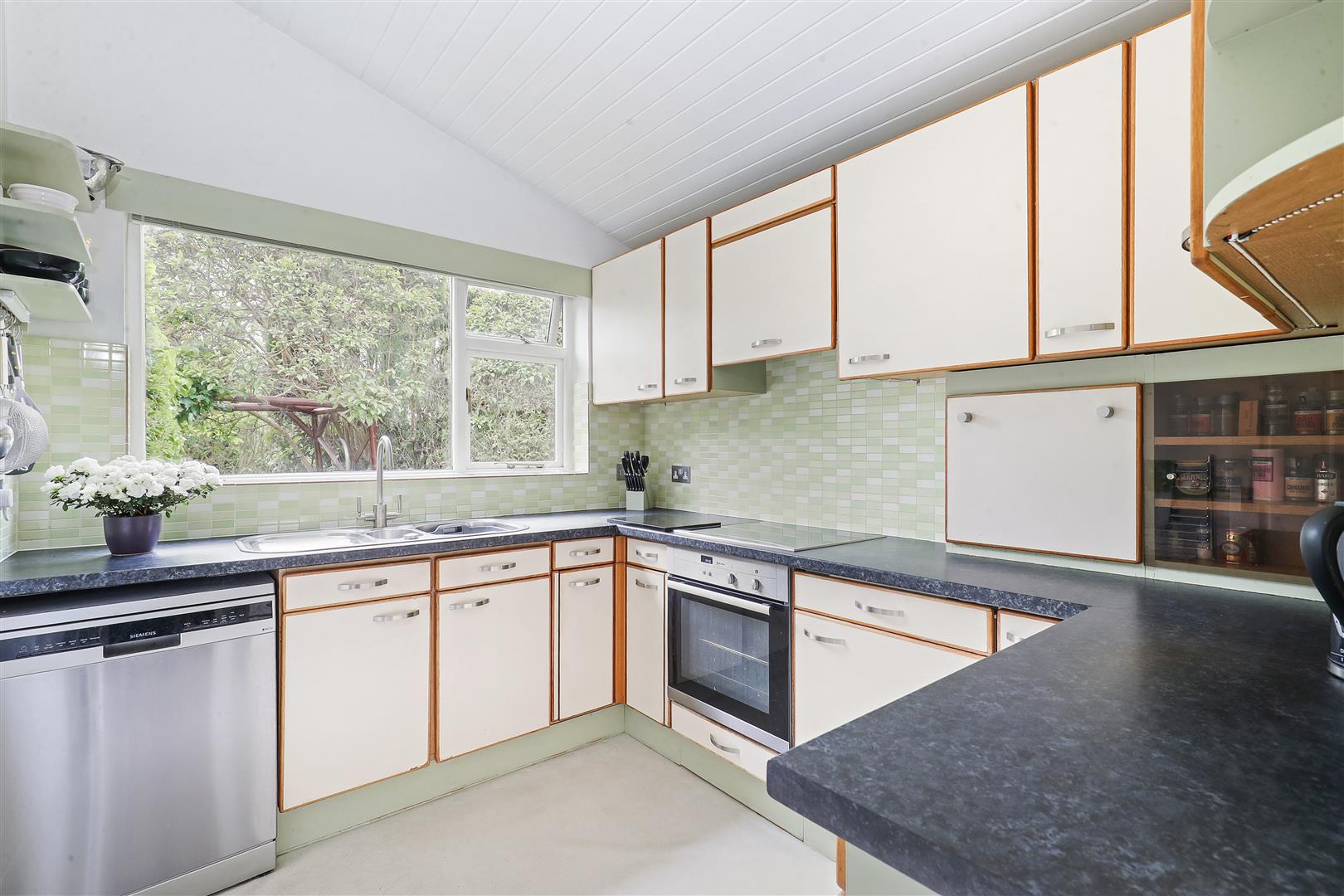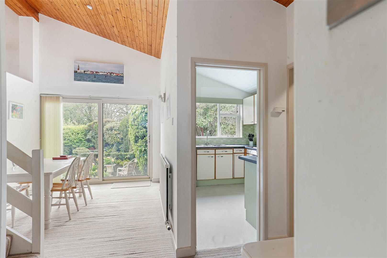 The property is entered via a spacious and welcoming hallway, leading through to an impressive open-plan living and dining area. With high ceilings and a wonderful sense of volume, this space is perfectly suited to both everyday living and entertaining. The kitchen is well-appointed, offering an excellent range of worktops and storage, complemented by a south-facing aspect that ensures a bright and airy feel throughout the day.