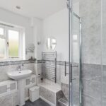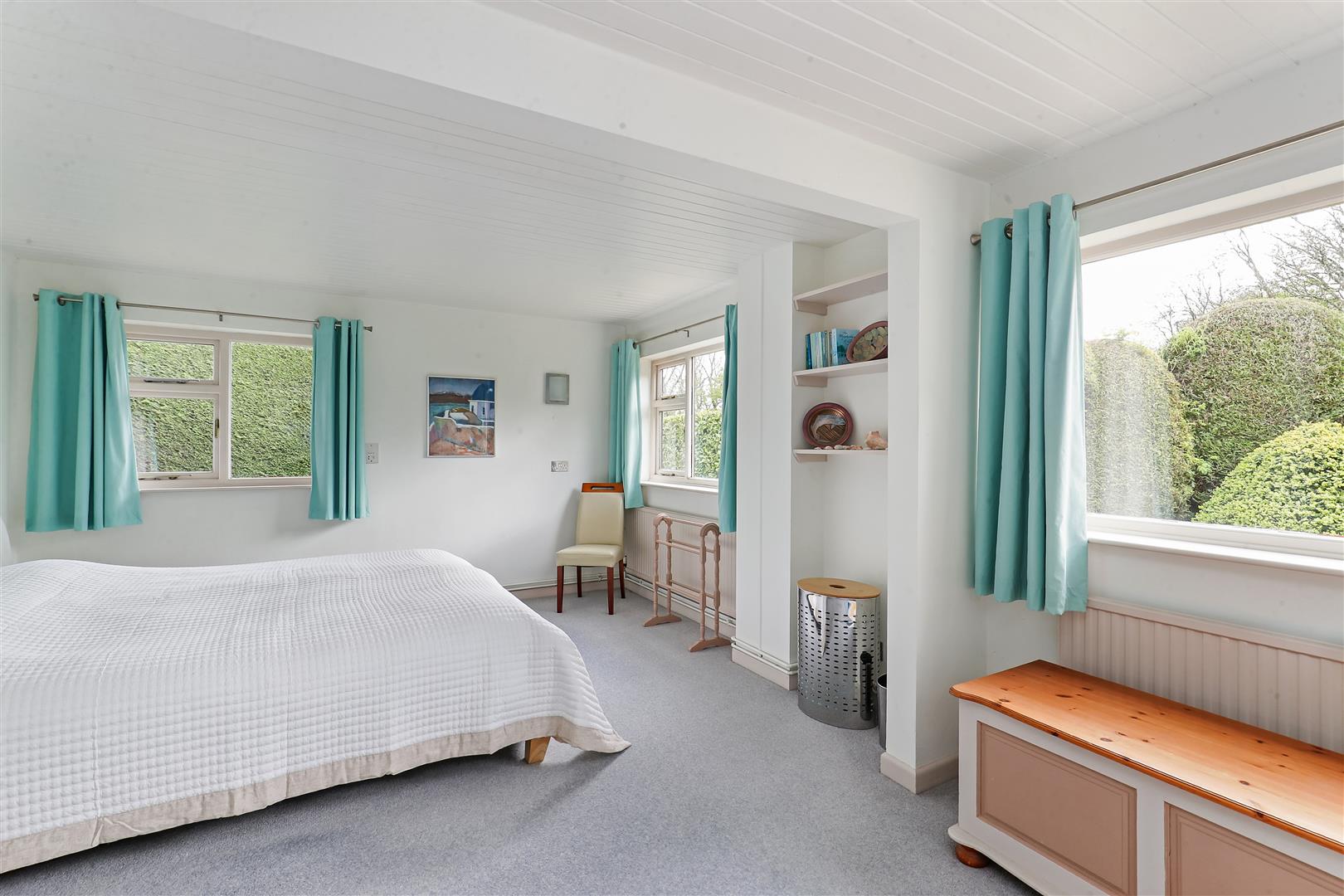 On the lower ground floor, the principal bedroom suite is particularly impressive, featuring generous proportions, extensive built-in storage, and a dedicated dressing area. Two further bedrooms, a separate shower room plus a family bathroom complete this level, along with internal access to the integral garage, which is currently arranged as a useful workshop and home gym.