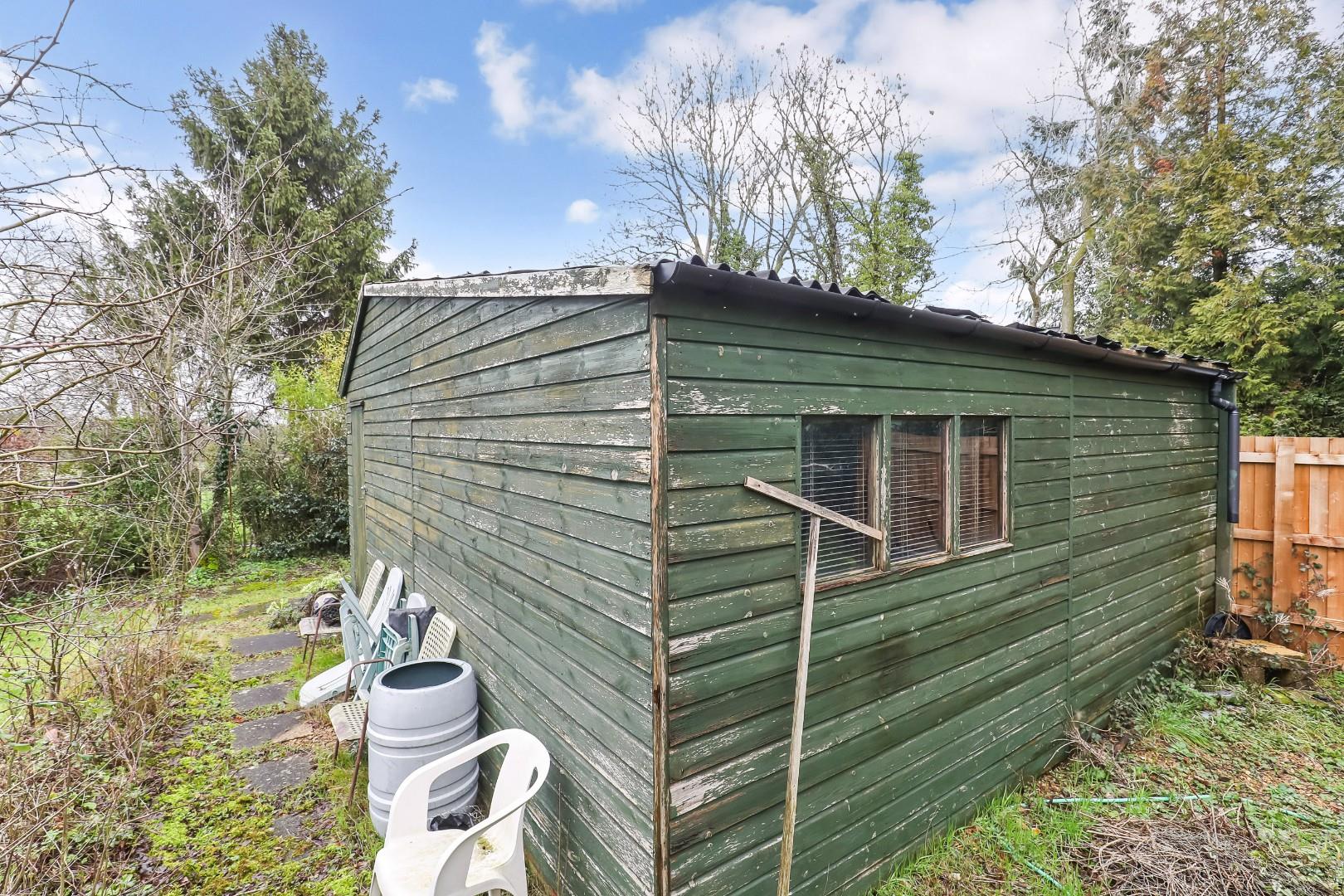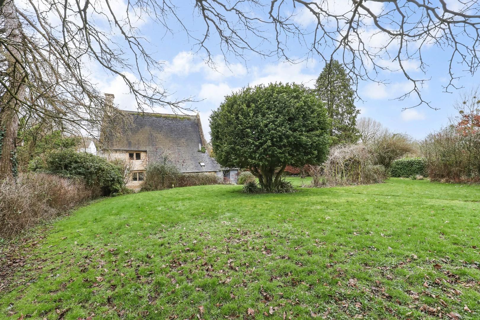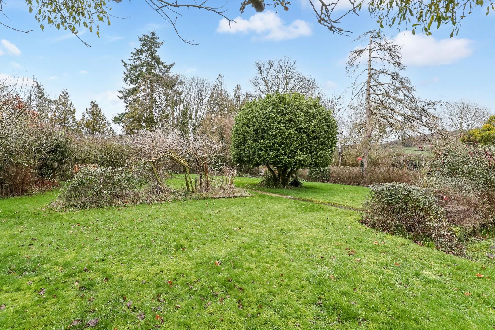 A wrap around garden is mainly laid to lawn with a fantastic range of mature trees and shrubs. There is a timber framed garage, outbuilding and greenhouse included, alongside the useful parking space.