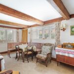 A ‘secret’ door in the arts and crafts panelling leads through the hallway to the dining area. The dining room continues the period appeal with dual aspect mullion windows. The kitchen has a practical layout, with windows overlooking the garden, while a hallway, cloakroom and useful boot room complete the ground floor accommodation.